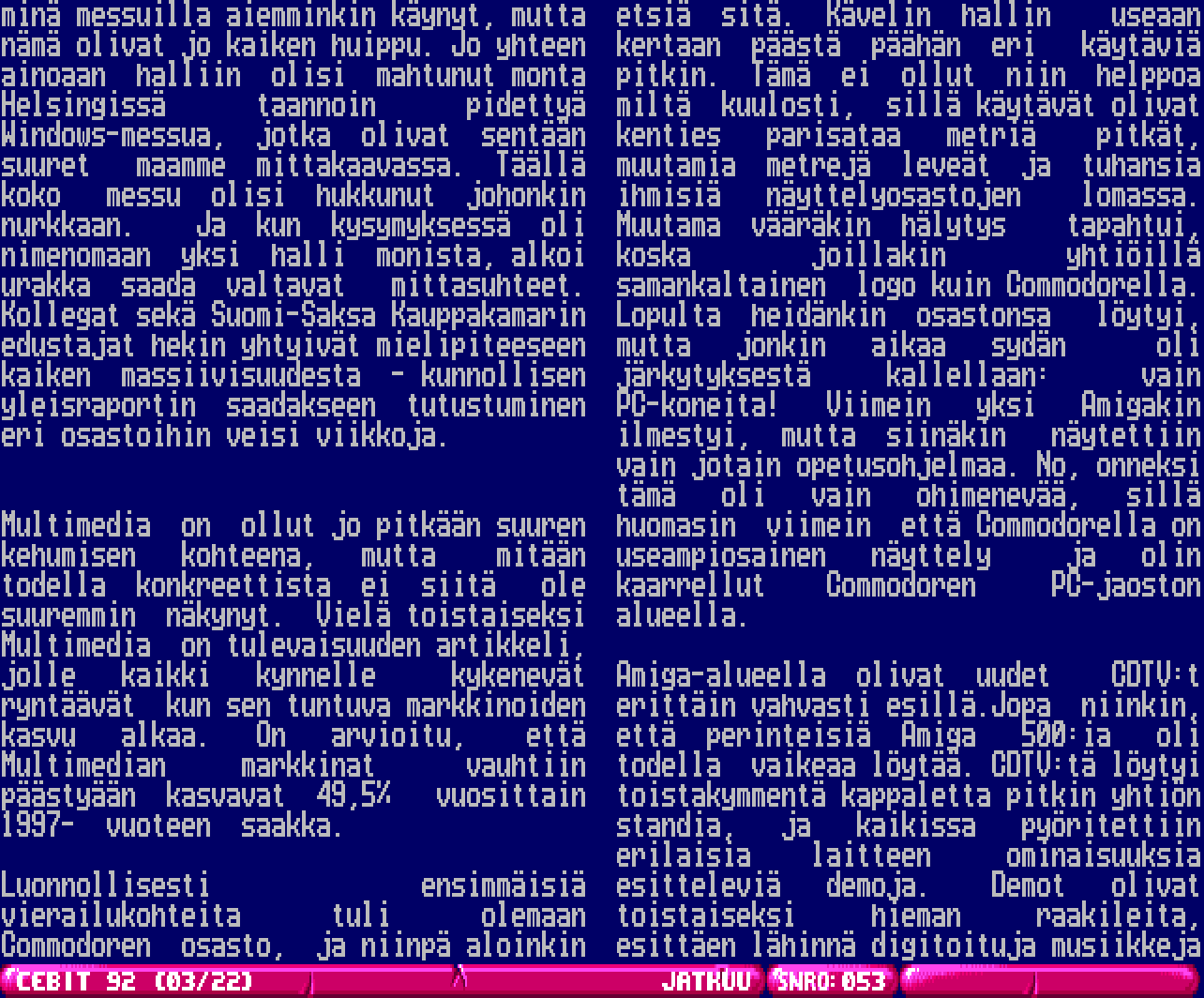 lukijat näin lukea maamme täydellisimmän CEBIT 1992-raportin.